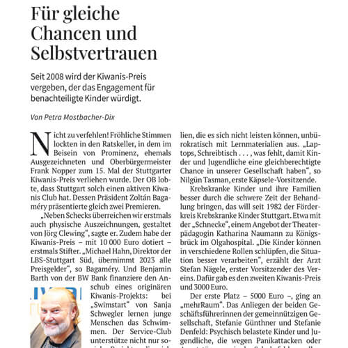 Danke an die Stuttgarter Kiwanis für den 3. Platz