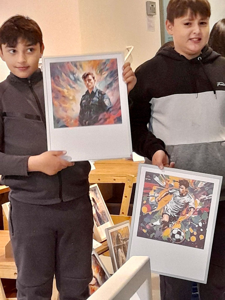 In unserem Kunstprojekt "Kunst von Käpsele" wurden die persönlichen Erzählungen von Kindern und Jugendlichen mit einem KI Programm in Kunstwerke verwandelt. Am 26. November 2023 wurden die Werke der Käpsele in der IFA Galerie in Stuttgart ausgestellt.