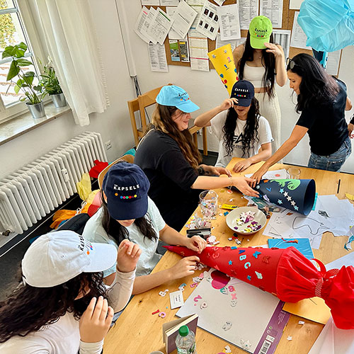 die älteren Käpsele basteln für die jüngeren Käpsele Schultüten